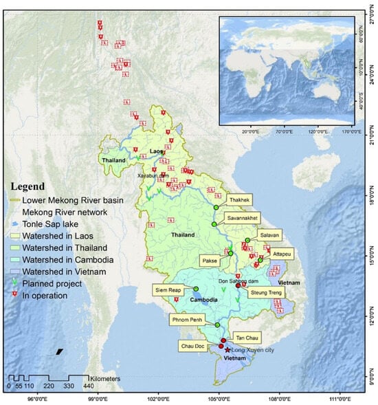 - Mekong Region Dams Database. Available online: https://www.merfi.org/mekongregiondamsdatabase (accessed on 23 September 2025).