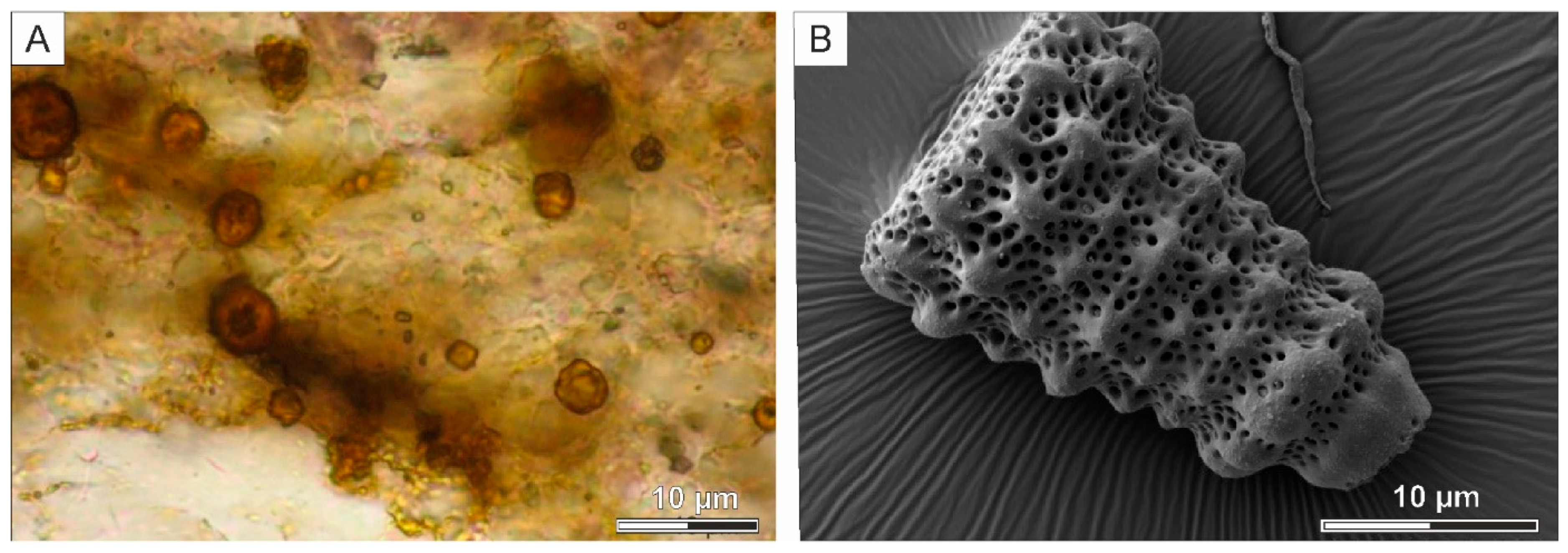 - Bąk, M.; Natkaniec-Nowak, L.; Naglik, B.; Bąk, K.; Dulemba, P. Organic-walled Microfossils from the Early Middle Cambrian sediments of the Holy Cross Mountains, Poland: Possible Implications for Sedimentary Environment in the SE Margin of the Baltica. Acta Geol. Sin. Ed. 2017, 91, 39–50. [Google Scholar] [CrossRef]