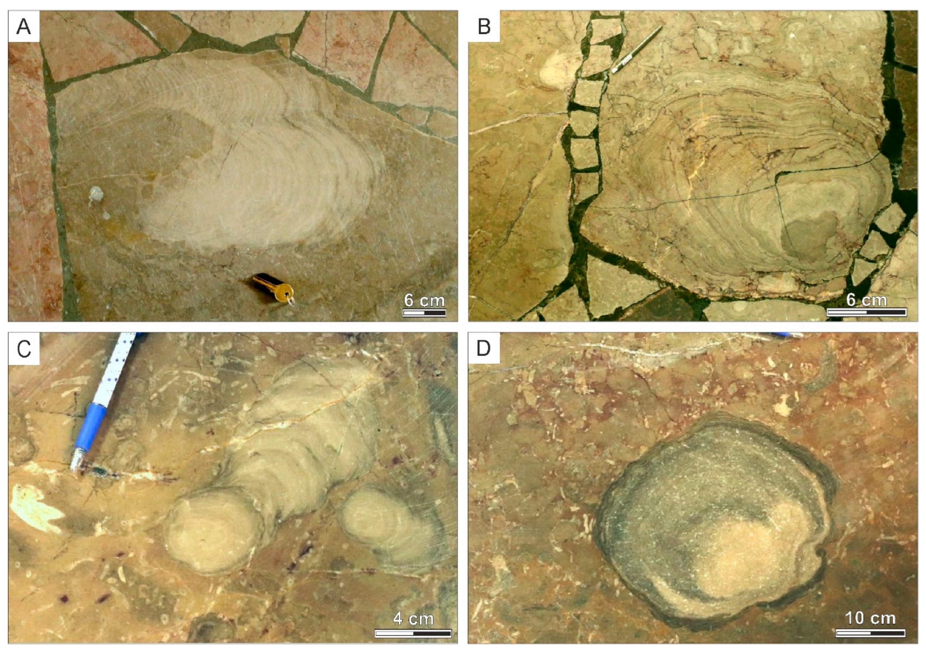 - Kaźmierczak, J. Morphogenesis and systematics of the Devonian stromatoporoidea from the Holy Cross Mountains, Poland. Palaeontol. Pol. 1971, 26, 5–147. [Google Scholar]