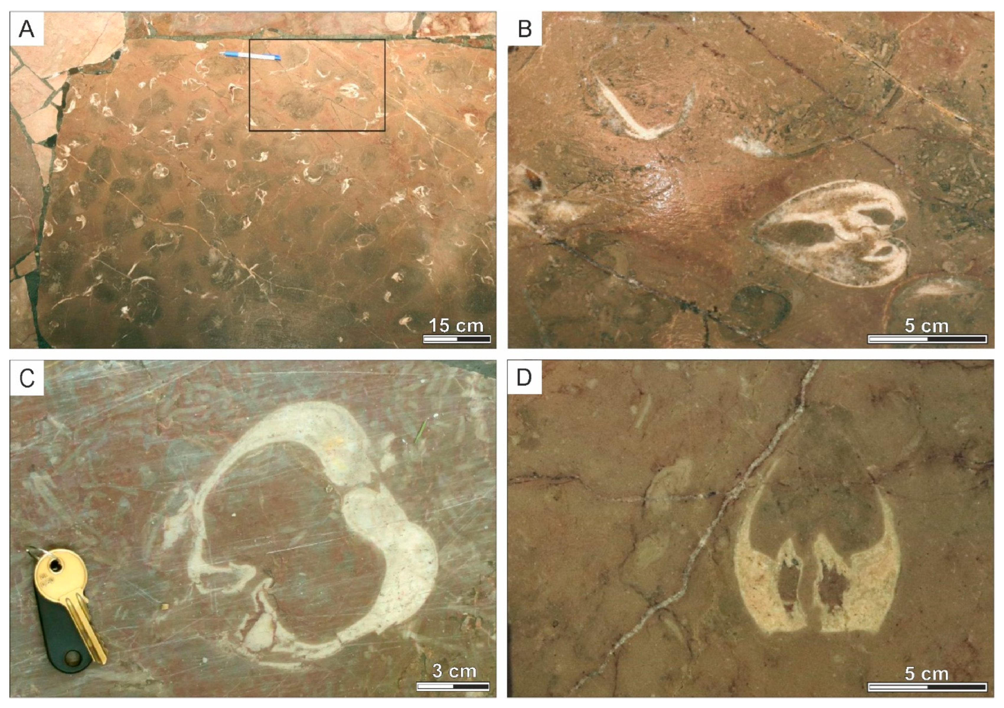 - Bąk, K.; Bąk, M.; Dulemba, P.; Okoński, S. Late Cenomanian environmental conditions at the submerged Tatric Ridge, Central Western Carpathians during the period preceding Oceanic Anoxic Event 2—A palaeontological and isotopic approach. Cretac. Res. 2016, 63, 95–112. [Google Scholar] [CrossRef]