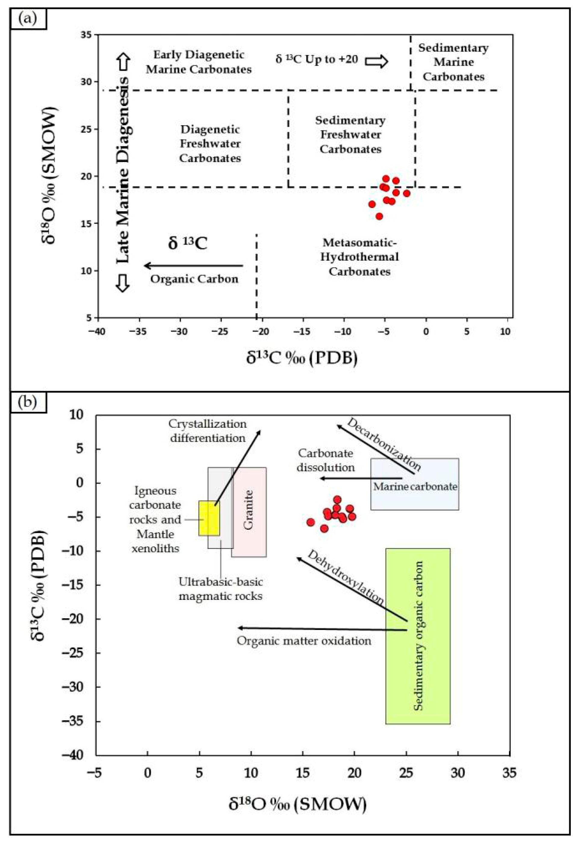 - McCrea, J.M. On the isotopic chemistry of carbonates and a paleotemperature scale. J. Chem. Phys. 1950, 18, 849–857. [Google Scholar] [CrossRef]