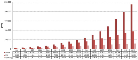 - European Wind Energy Association, Wind in Power: 2011 European Statistics; European Wind Energy Association: Brussels, Belgium, 2012.