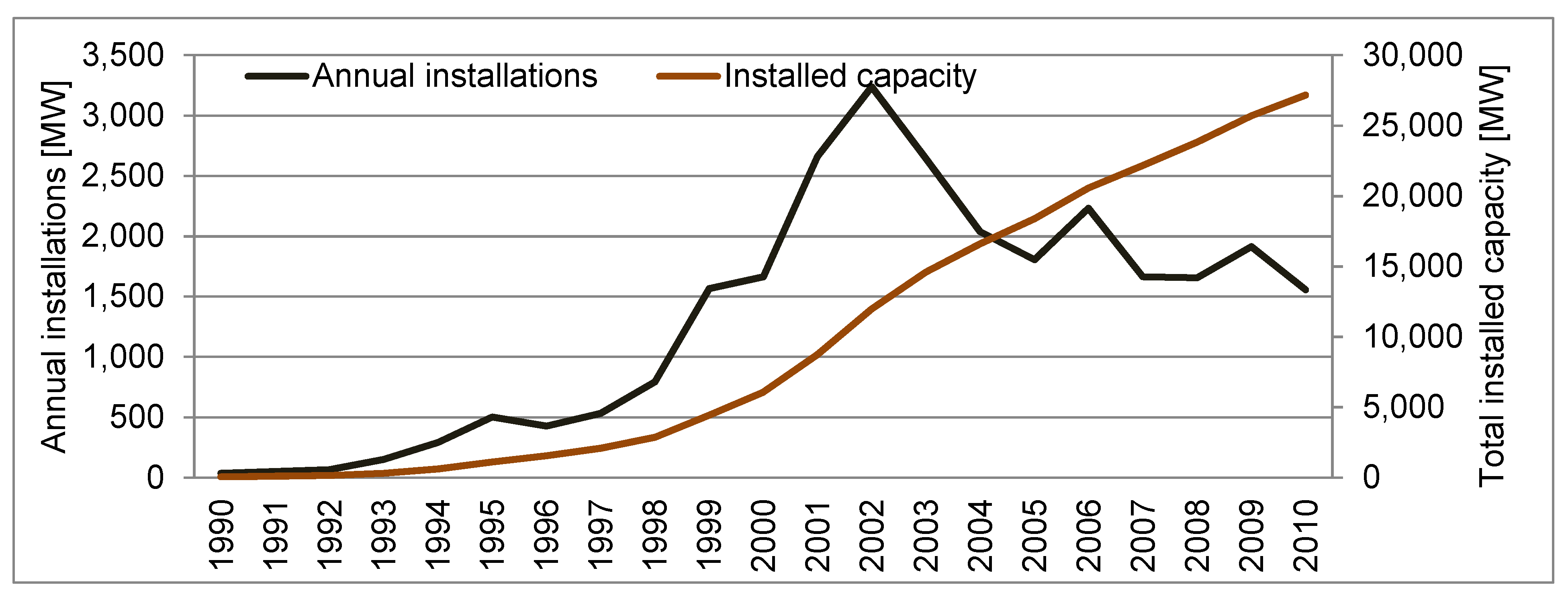 2.4. Analysis of Wind Energy Installations 1990–2010