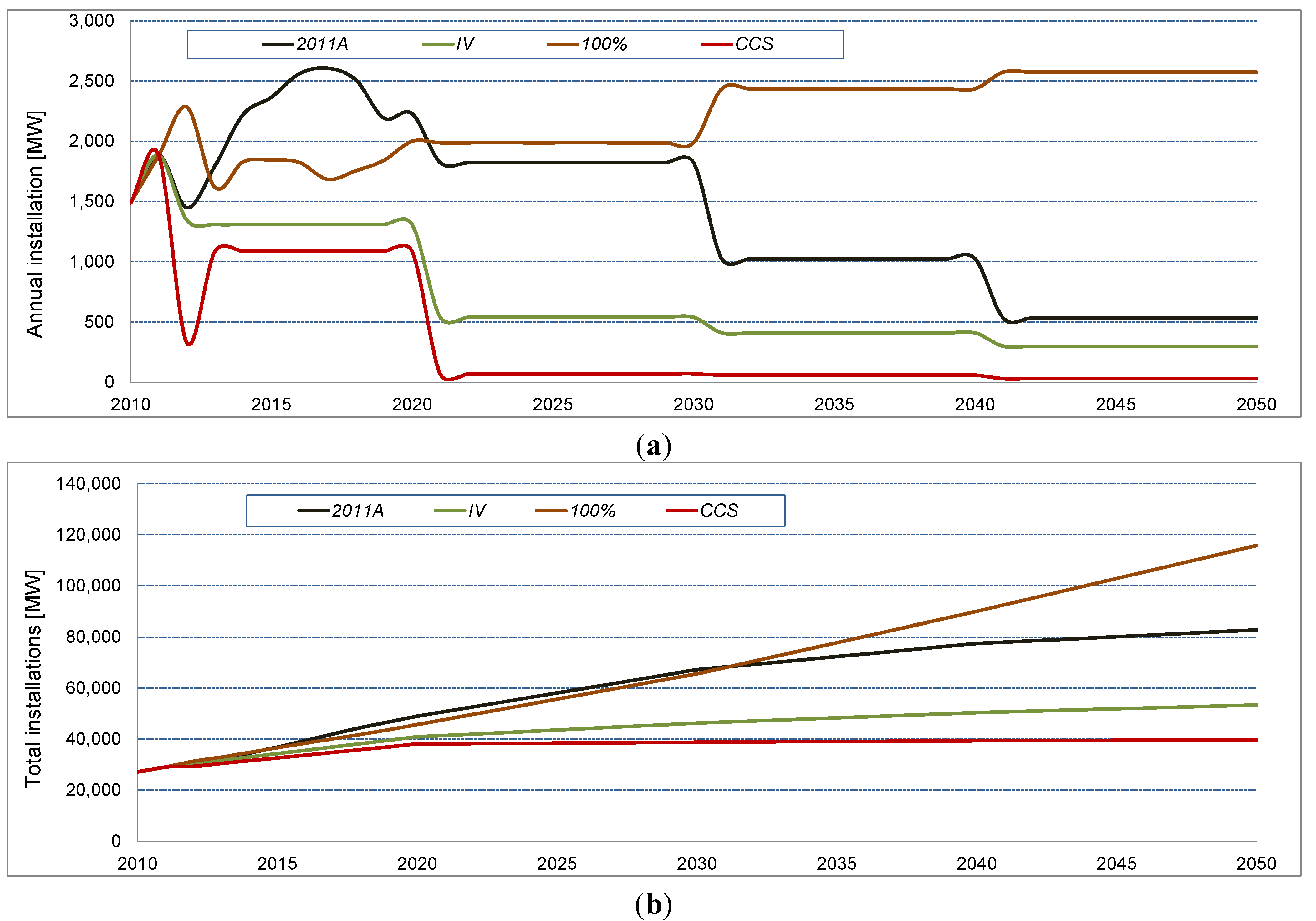 - Schlesinger, M.; Lindenberger, D.; Lutz, C. Energieszenarien 2011; [in German]; Study on Behalf of the German Ministry for Economy and Technology; Prognos AG: Basel, Switzerland; Energiewirtschaftliches Institut der Universität Köln (EWI): Cologne, Germany; Geselleschaft für Wirtschaftliche Strukturforschung mbH (GWS): Osnabrück, Germany, 2011. [Google Scholar]
