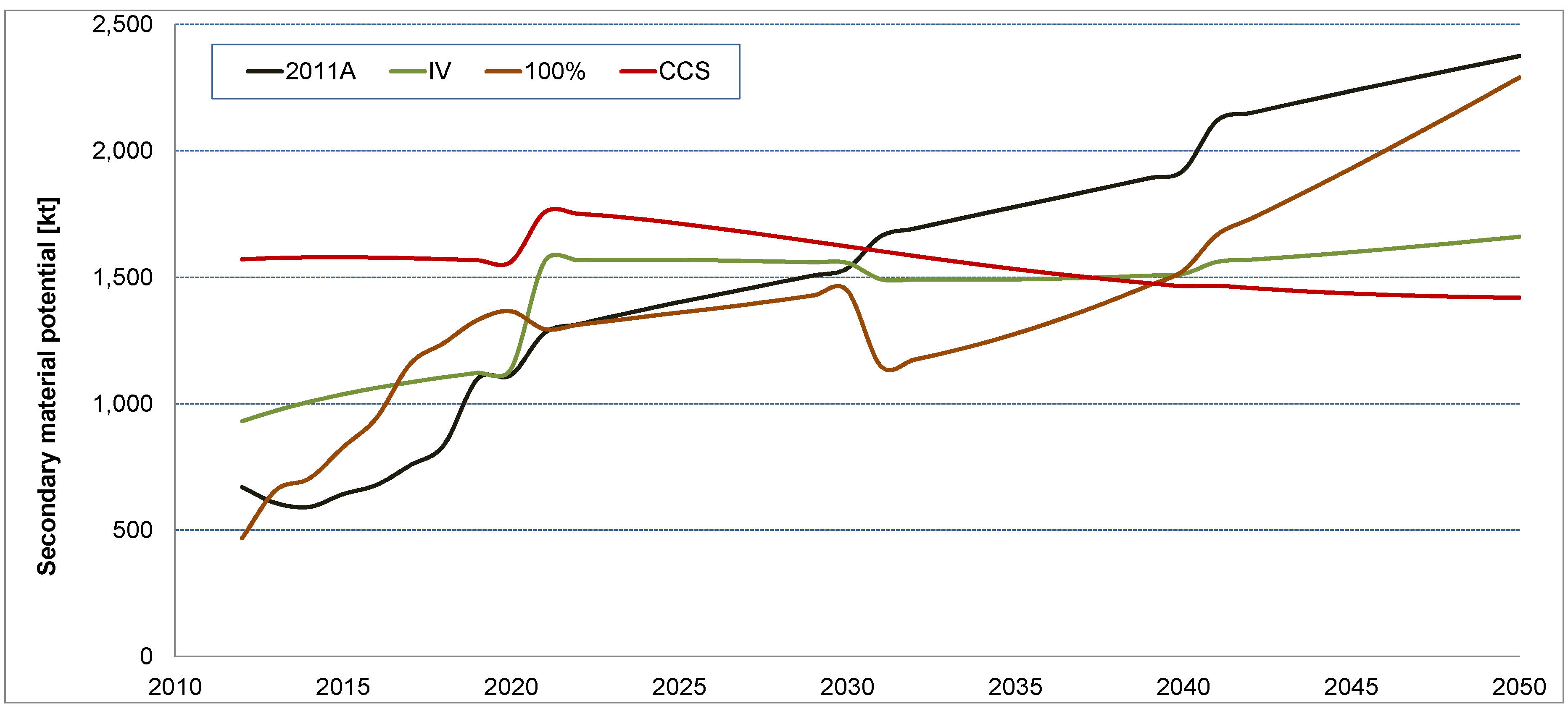 Evidently, any study of future material flows of wind energy deployment, just like for any other technology, is only as good as the underlying scenario for the future development. Especially for energy technologies these scenarios differ significantly from each other and even short term developments are not easily predicted due to unsteady political and regulatory boundary conditions. This is reflected in the differences shown between the four scenarios that have been used in this analysis. Nevertheless, we consider it appropriate to choose the 2011A scenario as a reference since it is based on most recent developments and political targets. Scenario analysis, however, should not be confused with prognosis. The real benefit from calculating the scenario based material demands lies in showing the consequences of certain strategic decisions on the energy system in terms of potential bottlenecks or conflicts. Based on this information decision makers can then proceed to take necessary precaution when developing policies and technologies. Apart from laying open the material consequences of certain energy policies, the wide range of the results very clearly shows the uncertainty the energy sector and its material suppliers have to deal with in the future, especially concerning rare earth metal demands.