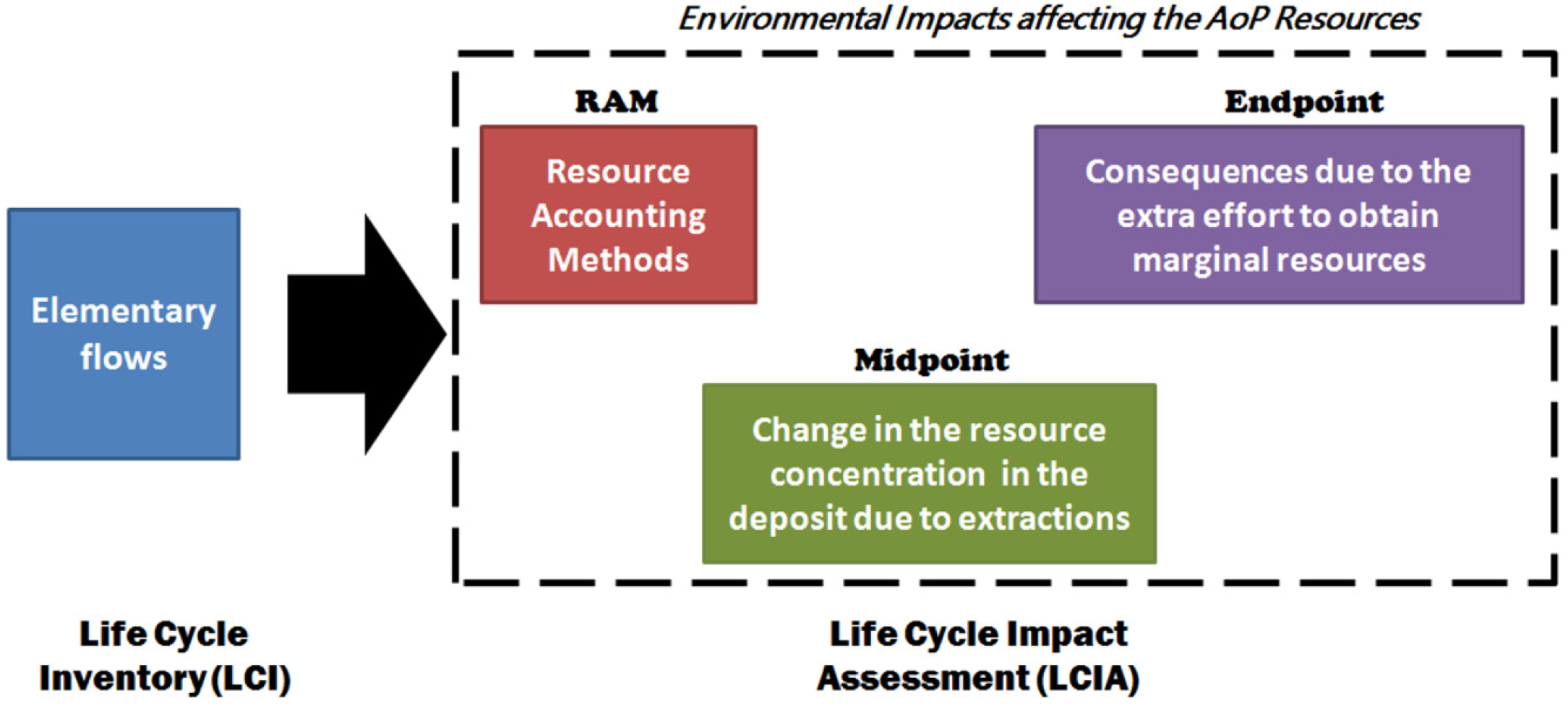 One of the tools that may assist in sustainable resource management, at the industrial scale, is a Life Cycle Assessment (LCA). Resources are seen in two ways in an LCA: (1) In one way, they are the inputs needed in industrial processes for the production of a product, and in this sense they are evaluated at the life cycle inventory (LCI) stage; and (2) in another way, they are evaluated as an area of protection (AoP), in life cycle impact assessments (LCIAs), i.e., natural resources are one type of environmental impact assessed, and there are different methods to evaluate these impacts.