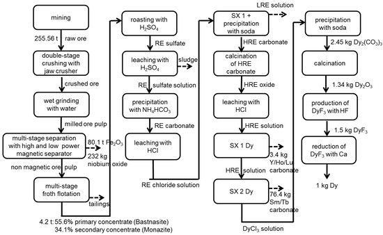 Process chain of the production of 1 kg Dy at Bayan Obo without allocation.