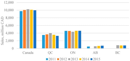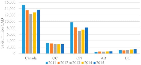 - Statistics Canada. Manufacturing Sales, by Subsector, by Province and Territory; Statistics Canada: Ottawa, ON, Canada, 2016. Available online: http://www.statcan.gc.ca/tables-tableaux/sum-som/l01/cst01/manuf33a-eng.htm (accessed on 16 June 2016).