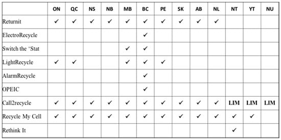 As can be seen from Table 5 and Figure 8, there are several e-waste collection programs available in various provinces concentrating on specific commodities that are then sent to different recyclers for further processing. All these organizations have drop-off locations around the country. This system provides the benefit of pre-sorting waste products into distinct categories prior to any processing and thus reducing cross-contamination.