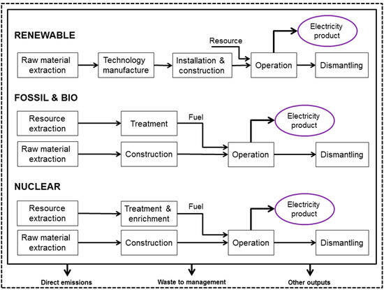 Simplified life-cycle diagram of the power generation technologies involved.