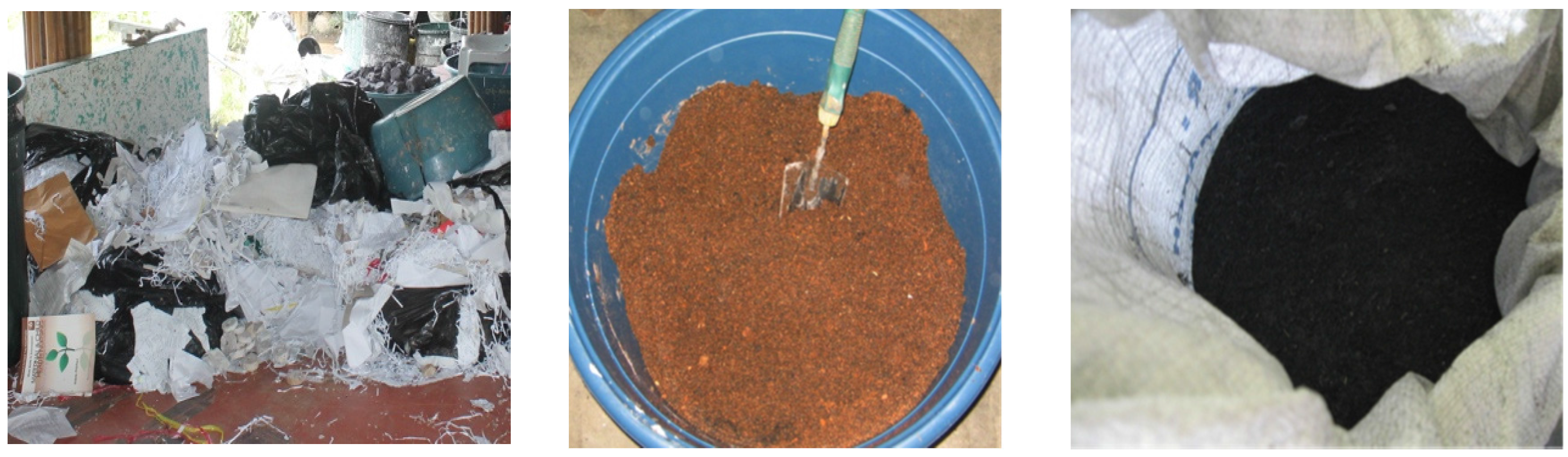 - Romallosa, A.R.D.; Hornada, K.J.C.; Ravena, N.; Paul, J.G. Testing of briquette production for household use by informal waste workers at the Calajunan dumpsite in Iloilo City, Philippines. In Proceedings of the International Conference on Solid Waste 2011 Moving Towards Sustainable Resource Management, Hong Kong, China, 2–6 May 2011.