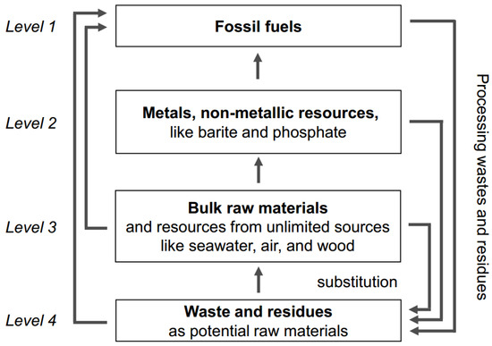 Hierarchy of natural resources [63]. Bulk materials on Level 3 are, for example, the construction materials, sand, gravel and limestone.