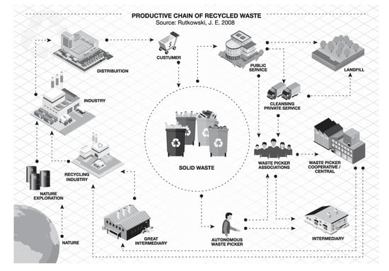 - Rutkowski, J.E.; Varella, C.V.; Campos, L.; Inácio, J.M. Análise da Cadeia Produtiva dos Materiais Recicláveis no Brasil. In Relatório de Pesquisa; INSTITUTO SUSTENTAR/FBB: Brasília, Brazil, 2013. [Google Scholar]