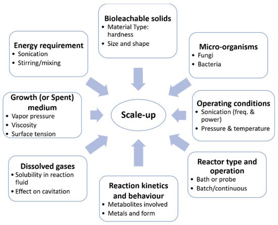 Scale-up considerations for an ultrasound-assisted bioleaching process (modified from [15]).