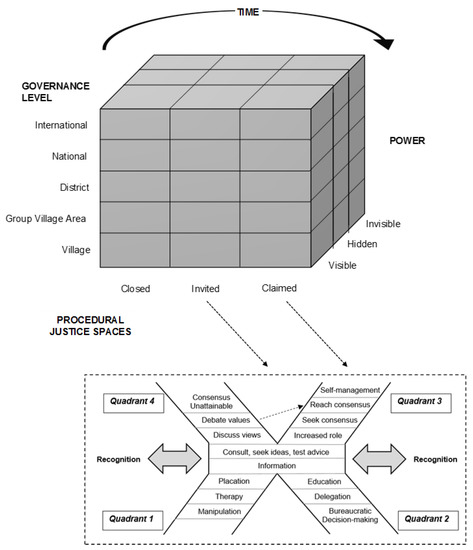 A framework to guide exploration of procedural justice spaces that exist for stakeholders under ECRP projects. Adapted from Gaventa [17]; Hurlbert and Gupta [13].