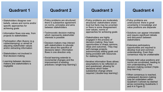 Quadrants for examining the depth of stakeholder participation within ECRP project implementation. Adapted from Hurlbert and Gupta [13].