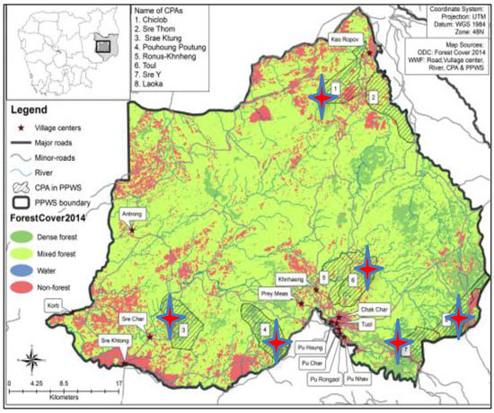 - USAID-Cambodia. Project Snapshot: Official Recognition of the Community Protected Areas Is a Sustainable Protection of Forest and Biodiversity; USAID-Cambodia: Phnom Penh, Cambodia, 2016.