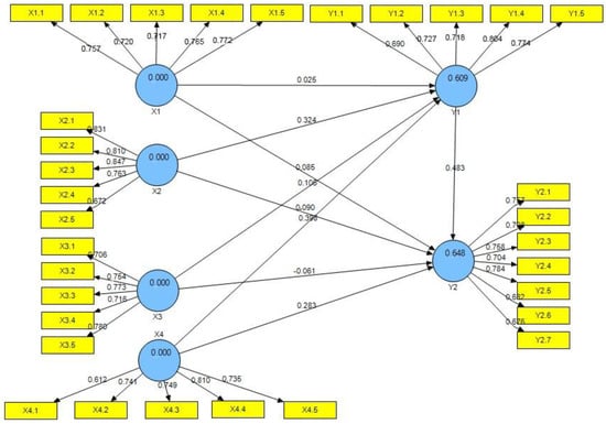 This value indicated that about 86.2% of the diversity of latent endogenous variables in the structural model could be explained by the model formed from exogenous variables, namely the potential of mangrove ecosystems (X1), the perception of coastal community (X2), coastal tourism facilities (X3), coastal ecotourism (X4), while the remaining 13.8% was explained by other variables outside the model and error. Because the Q2 value of predictive relevance was more than 0.50, it could be inferred that this structural model was good fit. An exogenous latent variable was said to affect endogenous latent variables if T statistics were worth more than 1.96 or less than −1.96. The test results are shown in Table 22 below.