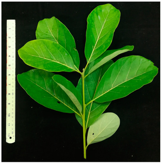 Botanical description and distribution: Litsea glutinosa (Lour.) C.B. Robinson belongs to the Lauraceae family. It is distributed throughout South Asia and Southeast Asia, including India, Bangladesh, the Philippines, and Thailand [68,69,70,71]. It is a medium-sized plant, approximately 20 m tall [68,69,70,72,73]. The branch shape is slim, stiff, and tomentose towards the apex. The bark is thin, ranging from grey to brown; the live bark is 3 mm thick, pale brown, and very slimy when wet. The leaf size varies between 7–15 cm × 3–7 cm. They are spirally arranged. The shape of the leaf is usually oblong-oval or elliptic lateral. Each petiole is 1.5–3 cm long. The flowers are arranged in umbels approximately 4–5 mm in diameter and the peduncles are up to 5 mm long. The fruit size is around 6 mm in diameter with purplish black colour [72].