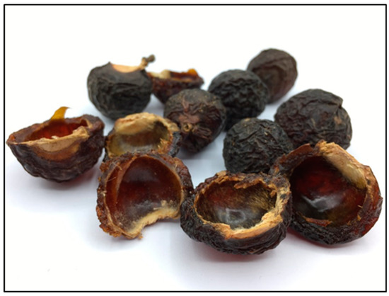 Pharmacology and utilisations: In Thailand, the pericarps of S. rarak (Figure 2) have been used in traditional medicine and as a source of natural surfactant, displaying a foaming property. The methanol extract from this plant parts shows an inhibitory effect on pancreatic lipase activity and on skin irritants [8,75,76]. The fruits pericarp of S. rarak are commonly used for cleaning and washing clothes [74] and, traditionally, as a natural detergent and medicine. In addition, local people in Bhutan have been used them as shampoo ingredient for eliminating lice [78]. The natural detergent from the pericarp is environmentally friendly compared to chemical soap. Saponins from S. rarak have a moluscisidal activity which can be used as biopesticide [77] and a potential for a defaunating agent [8].