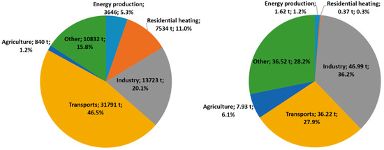 - Brandt, J.; Silver, J.D.; Christensen, J.H.; Andersen, M.S.; Bønløkke, J.H.; Sigsgaard, T.; Geels, C.; Gross, A.; Hansen, A.B.; Hansen, K.M.; et al. Contribution from the ten major emission sectors in Europe and Denmark to the health-cost externalities of air pollution using the EVA model system—An integrated modelling approach. Atmos. Chem. Phys. 2013, 13, 7725–7746. [Google Scholar] [CrossRef]