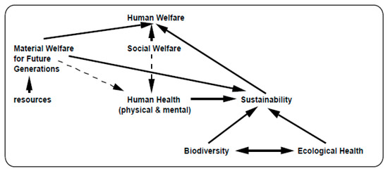 However, does the mining of minerals and possibly the depletion of metals really belong to an ecological analysis like the Life Cycle Assessment? Are these not rather socio-economic aspects that cannot be adequately illustrated with the methodological instruments of the LCA? This issue has been the subject of much controversy for many years. In an attempt to hierarchize the safeguard objects in the life cycle assessment, Hofstetter and Scheringer (1997) based the LCA on human welfare and divided it into the social welfare of today’s generations and the material welfare of future generations [48]. They identified additional safeguard objects related to resource supplies, human health, biodiversity, and ecological health (Figure 3).