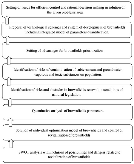 The proposed optimization model of brownfields parameters quantification is aimed at creation of a national strategy for revitalization of brownfields, which is one of the aims of European Union. The model and working out of methodology of prioritization of brownfields revitalization will serve for the needs of public administration authorities, mainly the Ministry of Economy and administration as an information ground for the needs of efficient control and rational decision making in solution of the given problems area and setting of prioritization of revitalization and investments. Thanks to the proposed model, it will be possible to assess individual brownfields. By evaluation of the gathered and analyzed data, it will be possible to identify the scope and type of problems that prevent reuse of the given object and to set priorities and aims in the process of revitalization and reuse of brownfields. The basic priority lies in an appropriate identification of localities that have the highest chance to succeed on the market, as they meet the requirements of investment and to provide time, money, and public support for them.