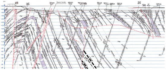 The complexity of the geological conditions of the brownfield is confirmed by the profile section (Figure 2). The most part of coal from the seams on this Profile (colored grey) was previously extracted by underground mines, which are conserved now.