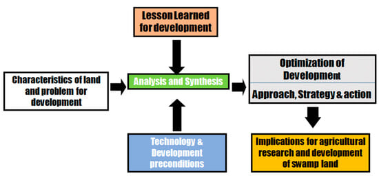 The conceptual framework for the development of swampland in Indonesia is presented in Figure 1. The framework is composed of four stages, which can be considered as steps to be followed for its application.