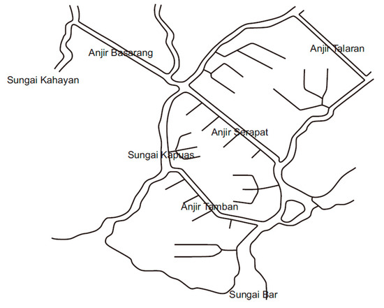 A sketch of the anjir system found in South Kalimantan and Central Kalimantan, based on Reference [18].