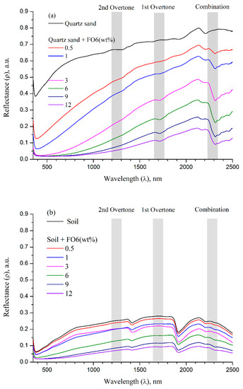The diffuse reflectance spectra of (a) quartz sand and (b) soil samples spiked with fuel oil 6.
