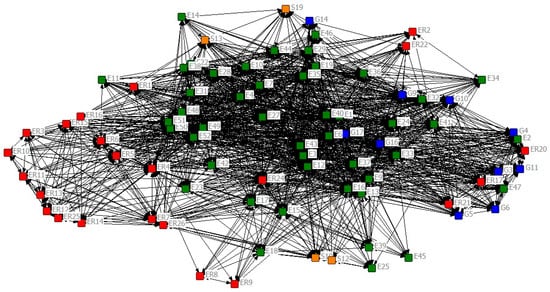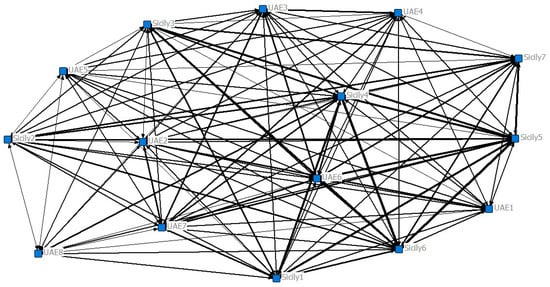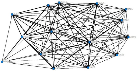 The elaborations were performed with UCINET software (version 6.4, Analytic Technologies, Lexington, KY, USA) for Windows, developed by Freeman et al. []. It can handle over 30,000 nodes, release graphics and perform solid matrix analysis such as matrix algebra and multivariate statistics.