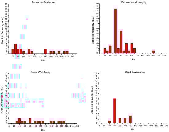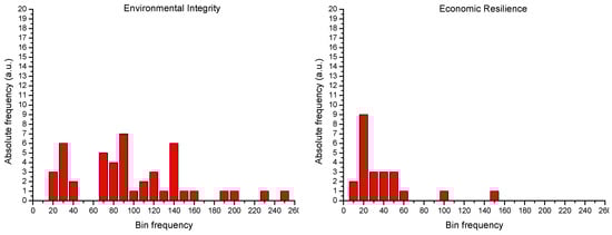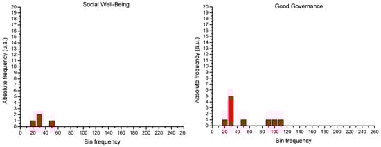 To observe how shares between criticalities are distributed within each context identified by the SAFA questionnaire. frequency distributions were calculated (Figure 4). Each bin (with a width of 10) indicates the range of importance (degree values) and the frequency indicates the number of times that they fall within the specific “criticality”.