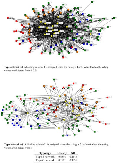 It can be seen that networks connected through information shared with a “best” rating level represent only about 10% of the possible connections. This result necessitated taking the analyses to a deeper level by using different cut off values: (a) 1 if the rating score is 1 or 2; (b) 1 if the rating score is higher than 4; (c) 1 if the rating score is 5. In (a). organic agriculture we can observe the criticalities of the network. while in (b) and (c) we can observe the aspects of excellence of the network.