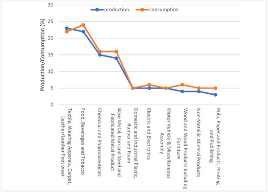 Current domestic sectorial production and consumption index in Nigeria. Data sourced from [39].