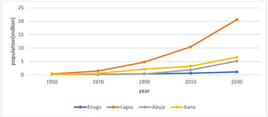 Growth pattern of some major cities in Nigeria. Source [81].