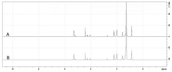 1H NMR has already been employed for the monitoring of oil deterioration processes during frying [36,37,38] and in a specific way for fatty acids determination [39,40]. This technique has some advantages with respect to the usual chromatographic methods, as it allows fast analysis, small sample volumes, and the simultaneous determination of multiple compounds [41]. In addition, Vigili [42] and Mannina [43] have employed NMR to identify the geographical origin of samples of olive oil.