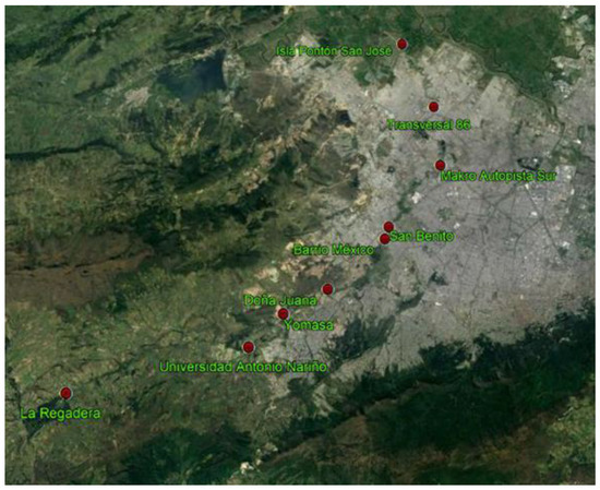 Bogotá is the capital of Colombia and constitutes the main geographic, political, industrial, economic, and cultural center of the country. The accelerated increase in population growth and economic development processes in Bogotá have generated multiple environmental impacts. Surface water resources are one of the most affected [34]. The capital has four major rivers (Torca, Salitre, Fucha, and Tunjuelo) that are monitored through the water quality network of Bogotá, which has a system of independent stations on each of the rivers.