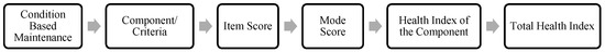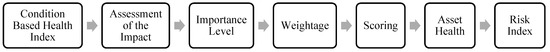 On the other hand, Hjartarson et al. in Reference [17] used a scoring and ranking method in determining the health index. The method was strengthened by the application of the importance weightage of the component to the asset. This method is widely used by other researchers [18,19,20,21,22,23]. Figure 4 shows the process of finding the condition of the asset.
