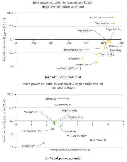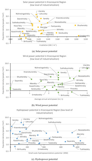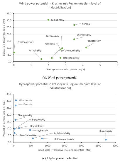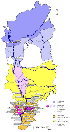 - There are four municipal entities (Sukhobuzimskiy, Novoselovskiy, Uiarskiy and Tiukhtetskiy), where all three purely renewable (solar, wind and micro hydro) sources of energy may be implemented (upon the condition of no conflict among them);