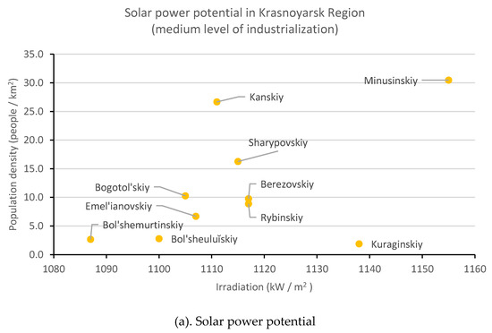 - Solar power has the highest potential to be implemented in the majority of thinly populated municipal entities of the Krasnoyarsk Region as a primary source of energy;