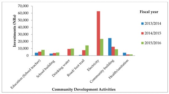 Investments pattern in different community development activities in fiscal year 2013/2014, 2014/2015 and 2015/2016.