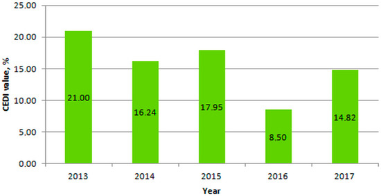 The CEDI values for the region were calculated for the period from 2013 to 2017 (See Figure 4).