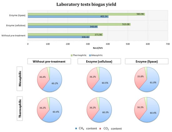 Figure 6. Outputs from laboratory tests of biogas yield with hydraulic retention time (HRT) = 27 days.