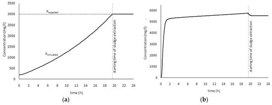 The presented model allows, therefore, evaluating the operating conditions in the biological reactor (the actual concentration of the biomass X and the waste amount) starting from defined conditions in the sedimentation tank (XR, QR). On the other hand, such conditions are dependent on the biomass concentration X at different times and on the waste sludge flowrate Qw.