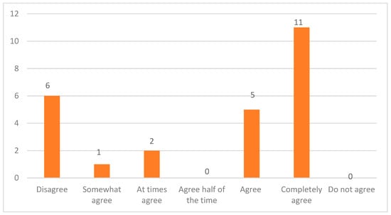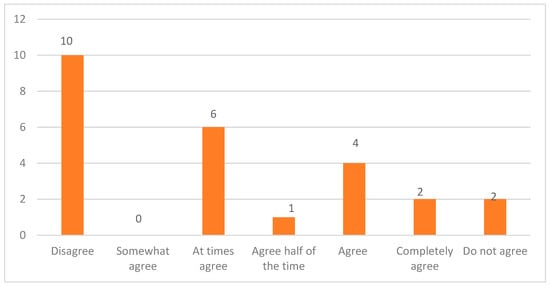 According to Figure 4, only six of the 25 participants completely disagree with the statement that their company is in a system made up of three elements and do not have external shareholders. In fact, 16 of the 25 participants (64%) indicate that they agree or completely in agreement with this statement.