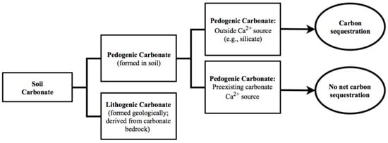 Soil carbonate classification based on type of carbonate precipitation and carbon sequestration pathway dependent on calcium source (adapted from Monger et al., 2015 []).