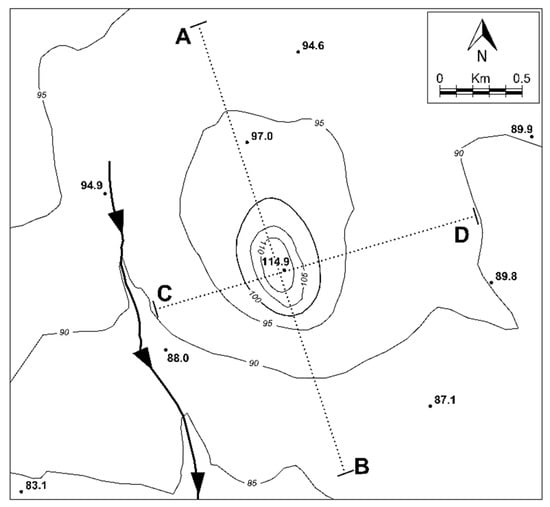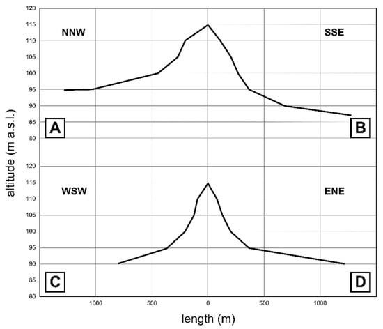 Figure 3) is made of a low-elevated and strongly asymmetric ridge, stretching in the W–E direction, interposed between the