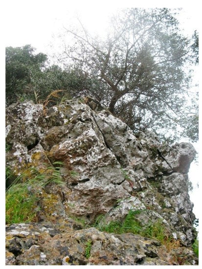 The Monte del Diavolo isolated relief is placed on the top surface of Monti Castelli limestone horst, close to two main fault scarps. It elevates about 20 m from a plain surface, stretching around 95 m altitude, reaching, at its top, 115 m above m.s.l.