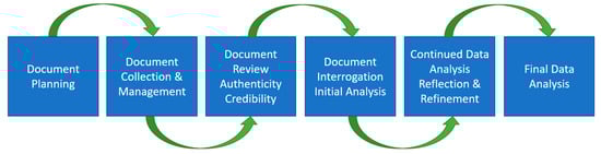Following the recommendations of O’Leary [63], the document analysis process in the present study was undertaken in six discrete phases as follows: